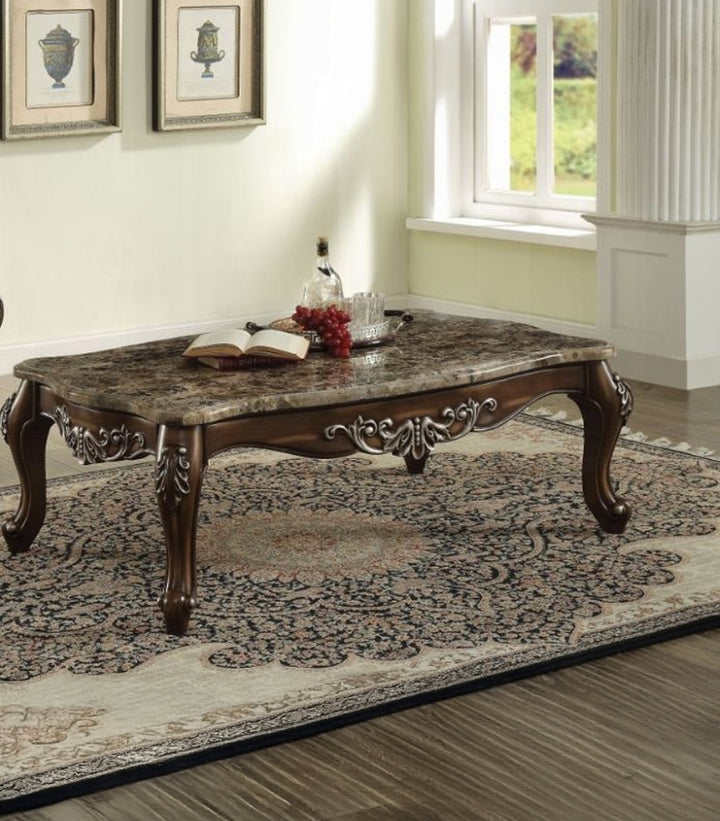Mesa de Centro Latisha de Madera y Mármol Color Café – Sofisticación y Estilo para tu Sala