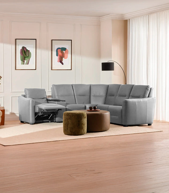 Sala Esquinera Reclinable Sanibel de Piel Color Gris – Confort Premium y Estilo Moderno en un Solo Mueble