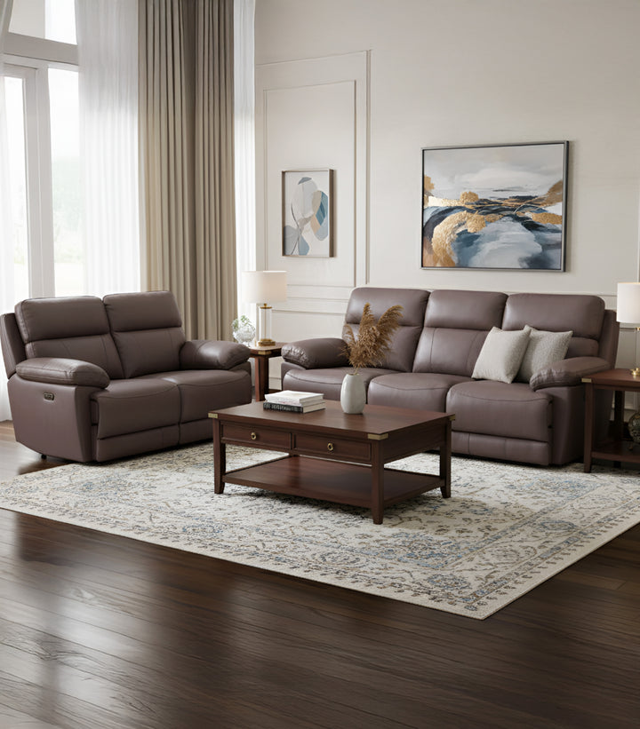 Sala Reclinable Reiner de piel color café - Sofá y Love Seat