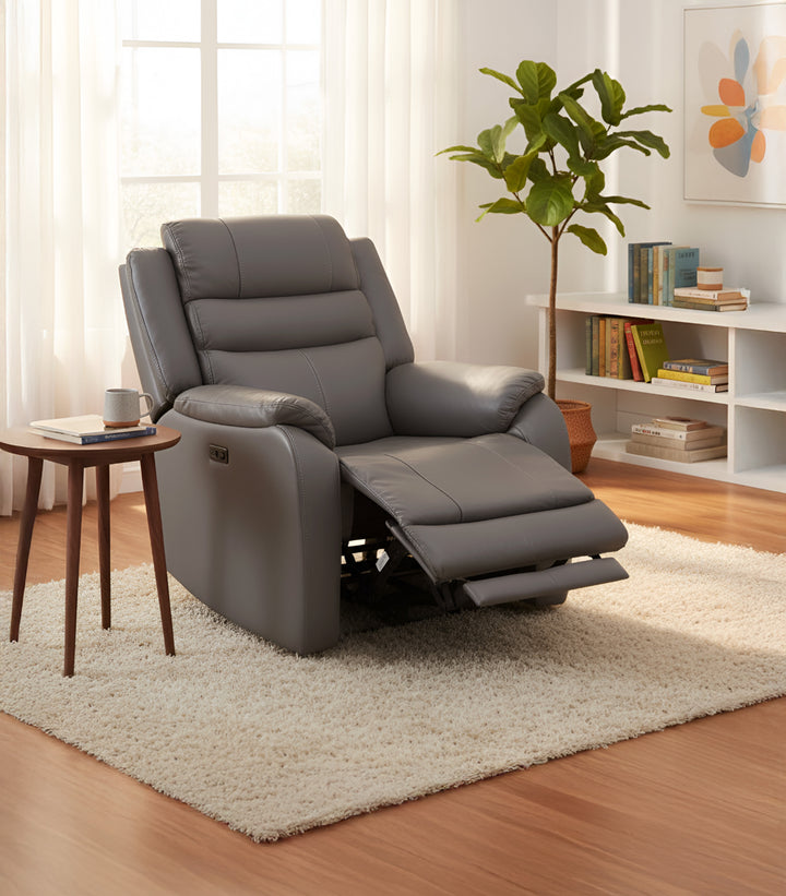 Sillón Reclinable Eléctrico Cooper de piel color gris