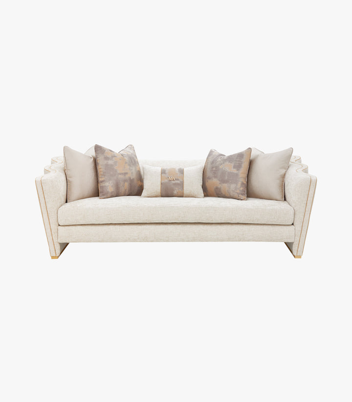Sofá La Terraza de Tela Cappuccino Champán Claro – Michael Amini | Sofisticación Contemporánea para Espacios Exclusivos